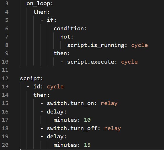 Кстати вот один из кейсов, зачем прошивать устройства на свои прошивки. Тут вот нужно было заменить розетку механическим таймером. Не у каждого девайса стоковая прошивка позволит реализовать логику "10 минут включено, 15 выключено". А в ESPHome, можно хоть медленный шим с pid накрутить, и все это будет стабильно работать не то что без интернета, а даже без WiFi.