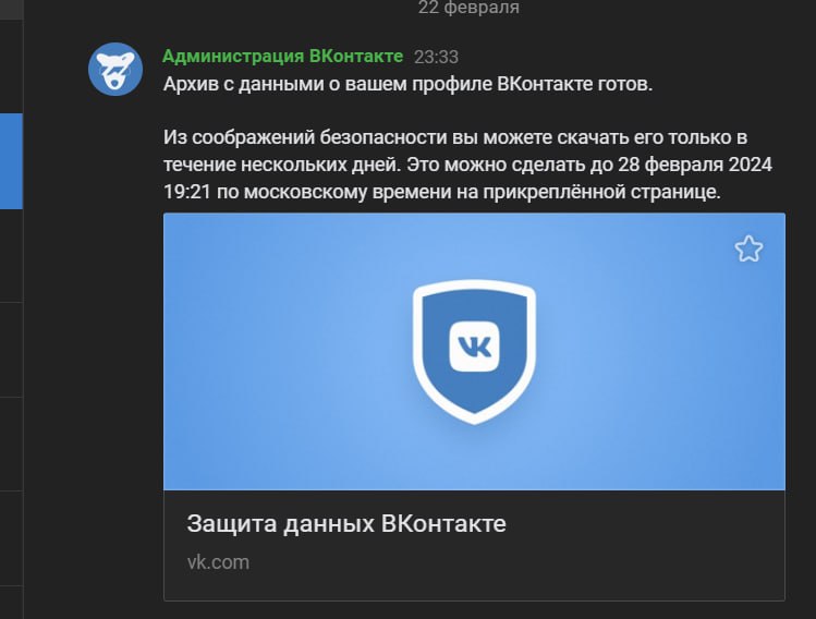 Дошли руки вытащить свои данные из VK.